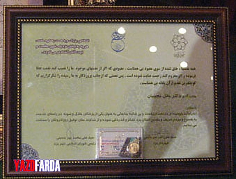 گزارش یزدفردا از مراسم تقدیر از دکترمجیبیان به عنوان شخصیت برگزیده استانی کانون یزدی تباران