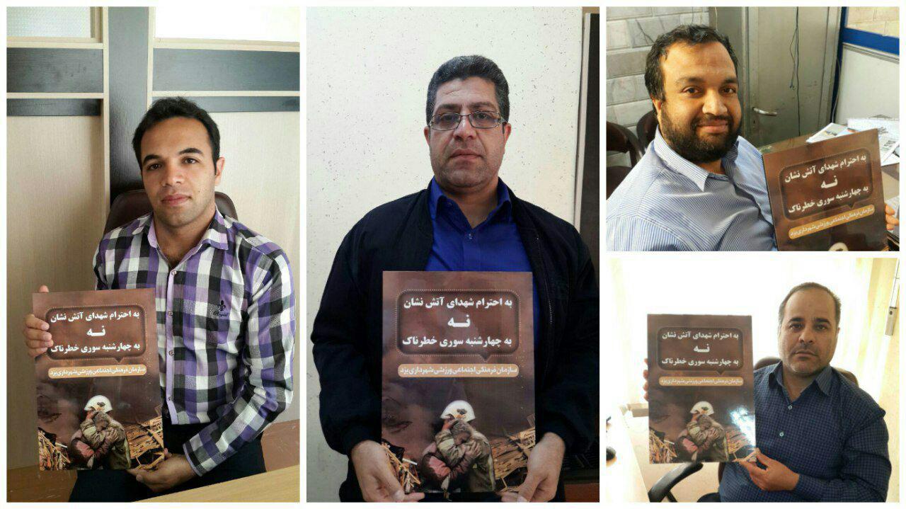 پویش " نه به چهارشنبه سوری خطرناک " به منظور تجلیل و قدردانی از شهدای آتش نشان و در راستای ارتقای فرهنگ پیشگیری، پویش « نه به چهارشنبه سوری خطرناک» راه اندازی گردید.