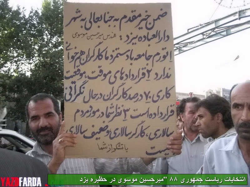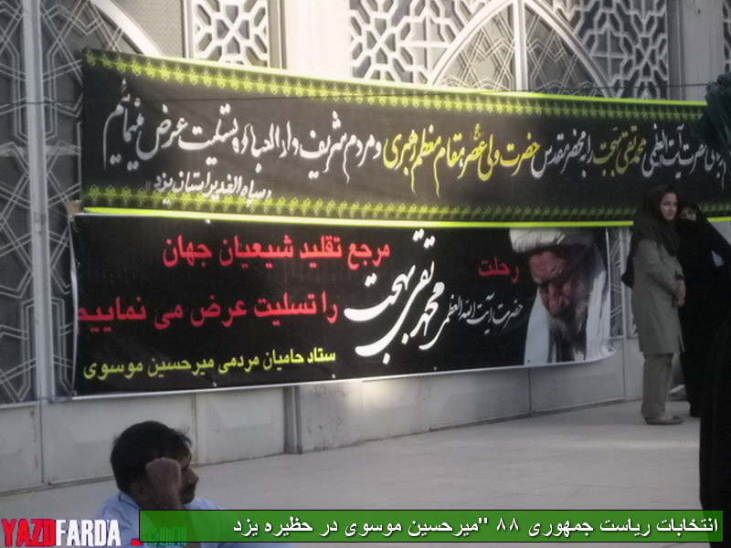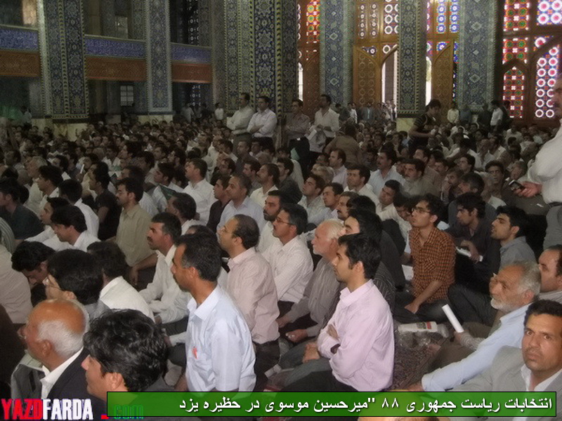 گزارش تصویری سفر دومین نامزد انتخاباتی ریاست جمهوری به استان یزد:میرحسین موسوی در حظیره یزد(1)
