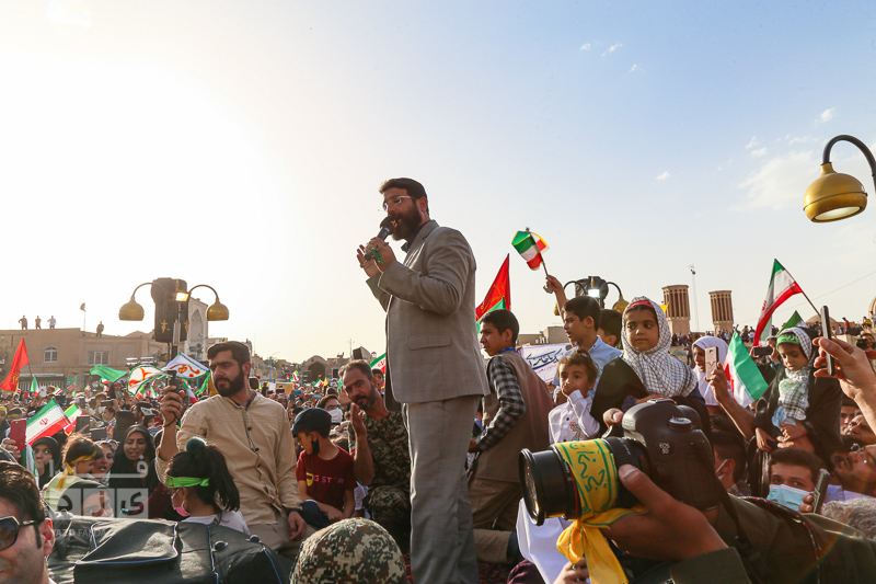اجتماع بزرگ «سلام فرمانده» عصر امروز شنبه با حضور دهه هشتادیها و نودیها و همخوانی سرود سلام فرمانده در میدان امیرچقماق یزد برگزار شد.