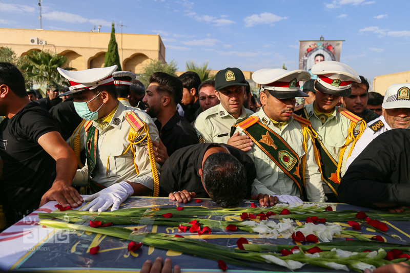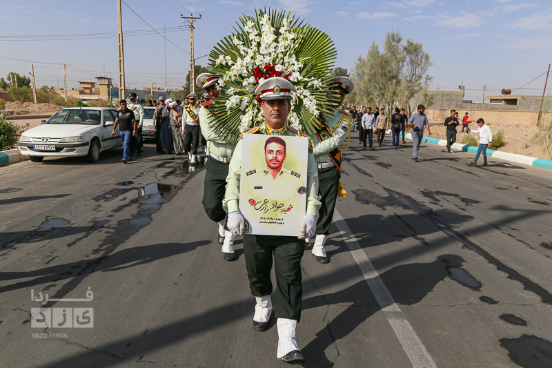 صبح امروز ۳۰ خرداد ماه پیکر پاک و مطهر شهید ستواندوم "جواد زارعی" در ستاد فرماندهی انتظامی استان یزد با حضور کلیه کارکنان انتظامی استان وداع و بر دستان مردم شهید پرور یزد تا گلزار شهدای خلدبرین تشییع و به خاک سپرده شد.