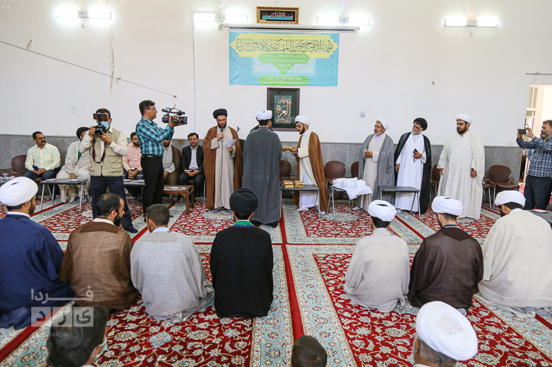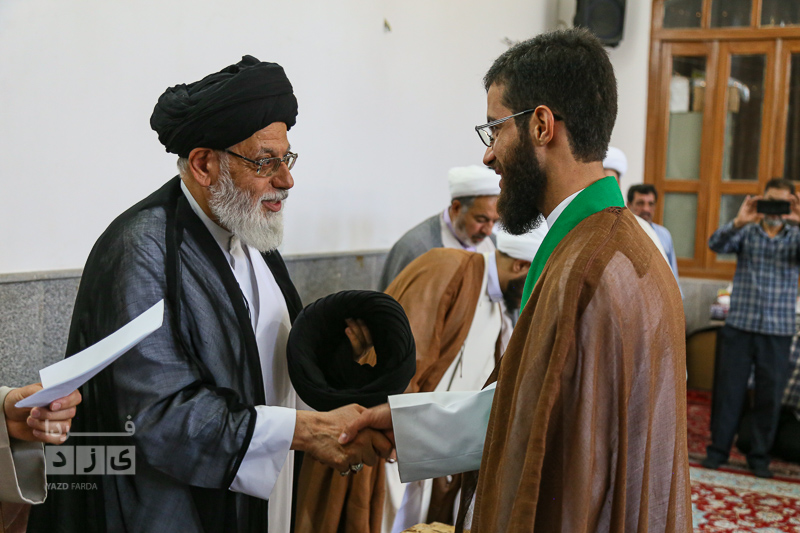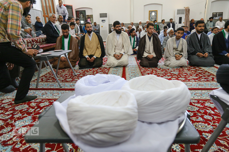 به مناسبت عید غدیر خم آیین عمامه گذاری ۱۵ طلبه جوان در در دفتر "آیتالله سید کاظم مدرسی" با اقشار مختلف مردم برگزار شد.