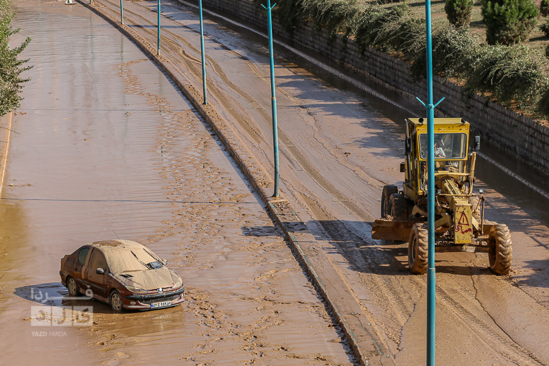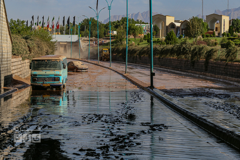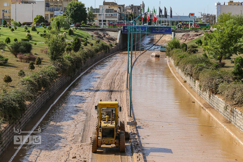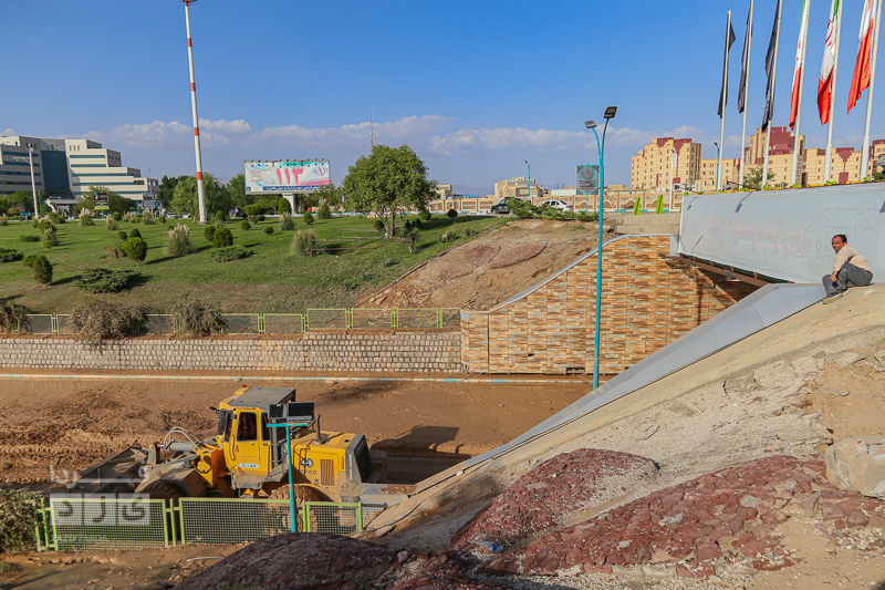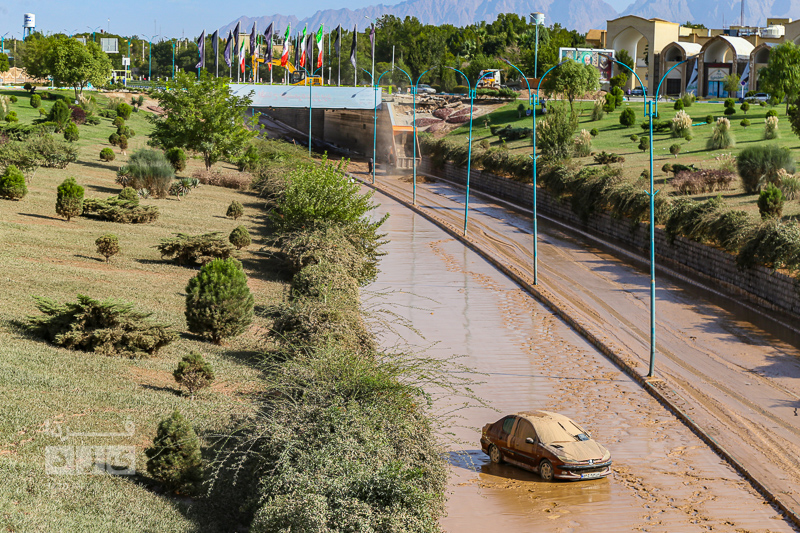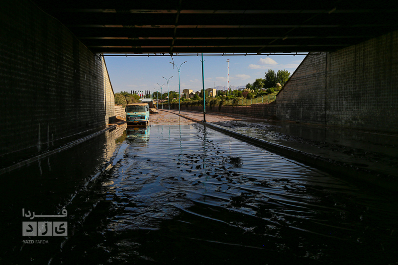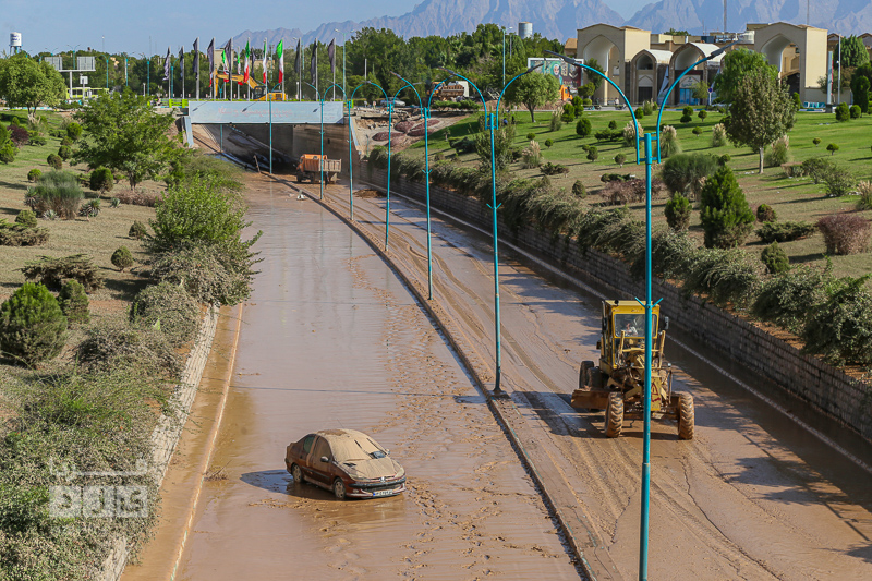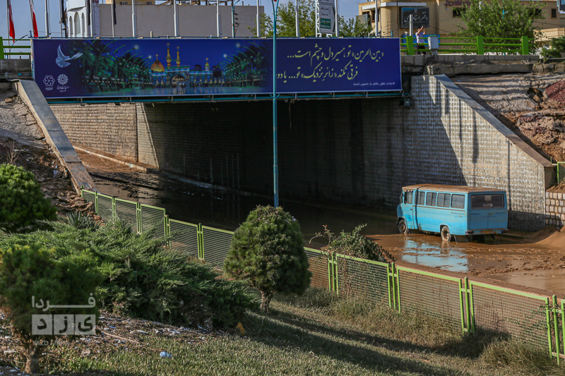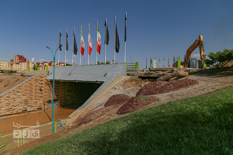 عملیات ترمیم خسارات زیرگذر میدان امام حسین(ع) و نمایان شدن خودروهای گرفتار شده