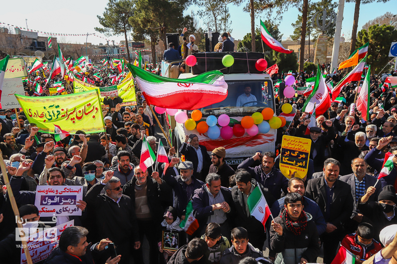 مراسم راهپیمایی چهل و چهارمین سالگرد پیروزی انقلاب اسلامی، امروز شنبه ۲۲ بهمن در میدان امیرچقماق و با حضور گسترده اقشار مختلف مردم دارالعباده یزد برگزار شد. سردار محمدرضا فلاحزاده جانشین فرمانده نیروی قدس سخنران این مراسم بود.