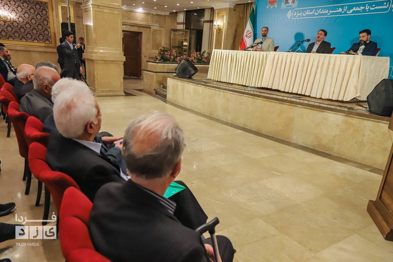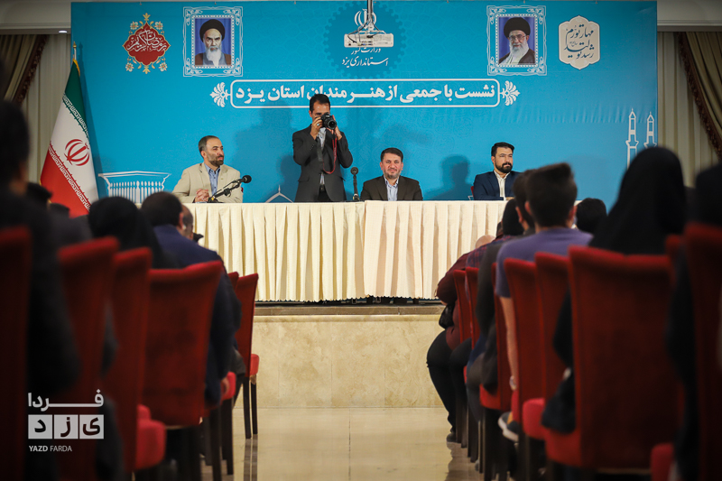 نشست مشترک دکتر مهران فاطمی استاندار یزد با جمعی از هنرمندان استان یکشنبه شب با هدف بررسی مسائل و دغدغه های این قشر برگزار شد که در این نشست بیش از ۱۴ نفر از نمایندگان رشته های مختلف درخواست های خود را مطرح کردند.