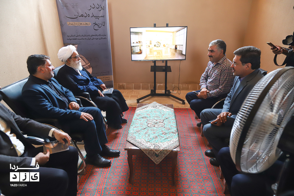 به مناسبت هفته دولت نمایشگاه یافته های باستان شناسی حاصل دستاورد و فعالیت باستان شناسی استان یزد با همکاری موزه ملی ایران صبح امروز پنج شنبه هشتم شهریورماه با حضور دکتر فاطمی استاندار و جمعی از مسئولان استان در محل باغ جهانی دولت آباد افتتاح شد.
