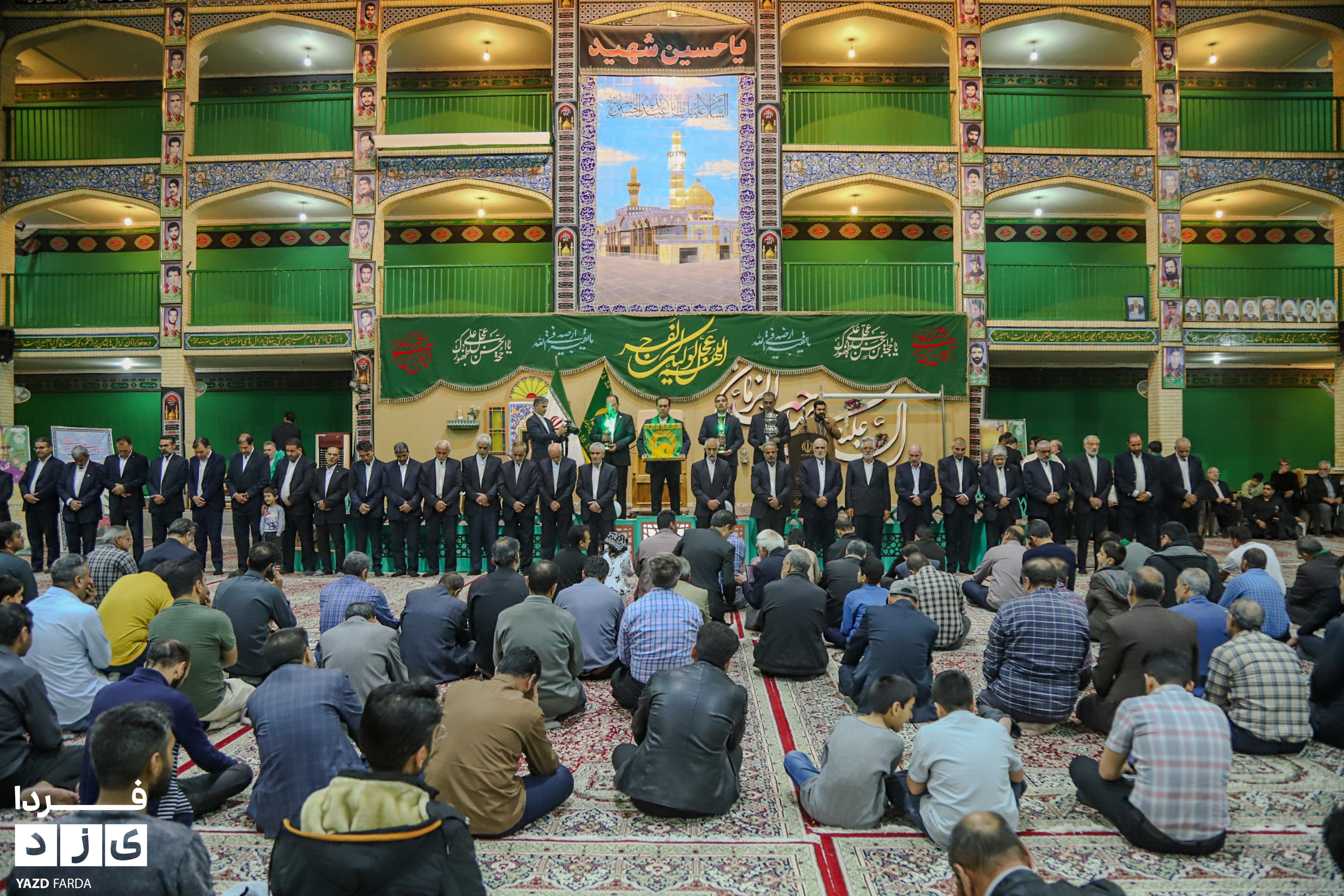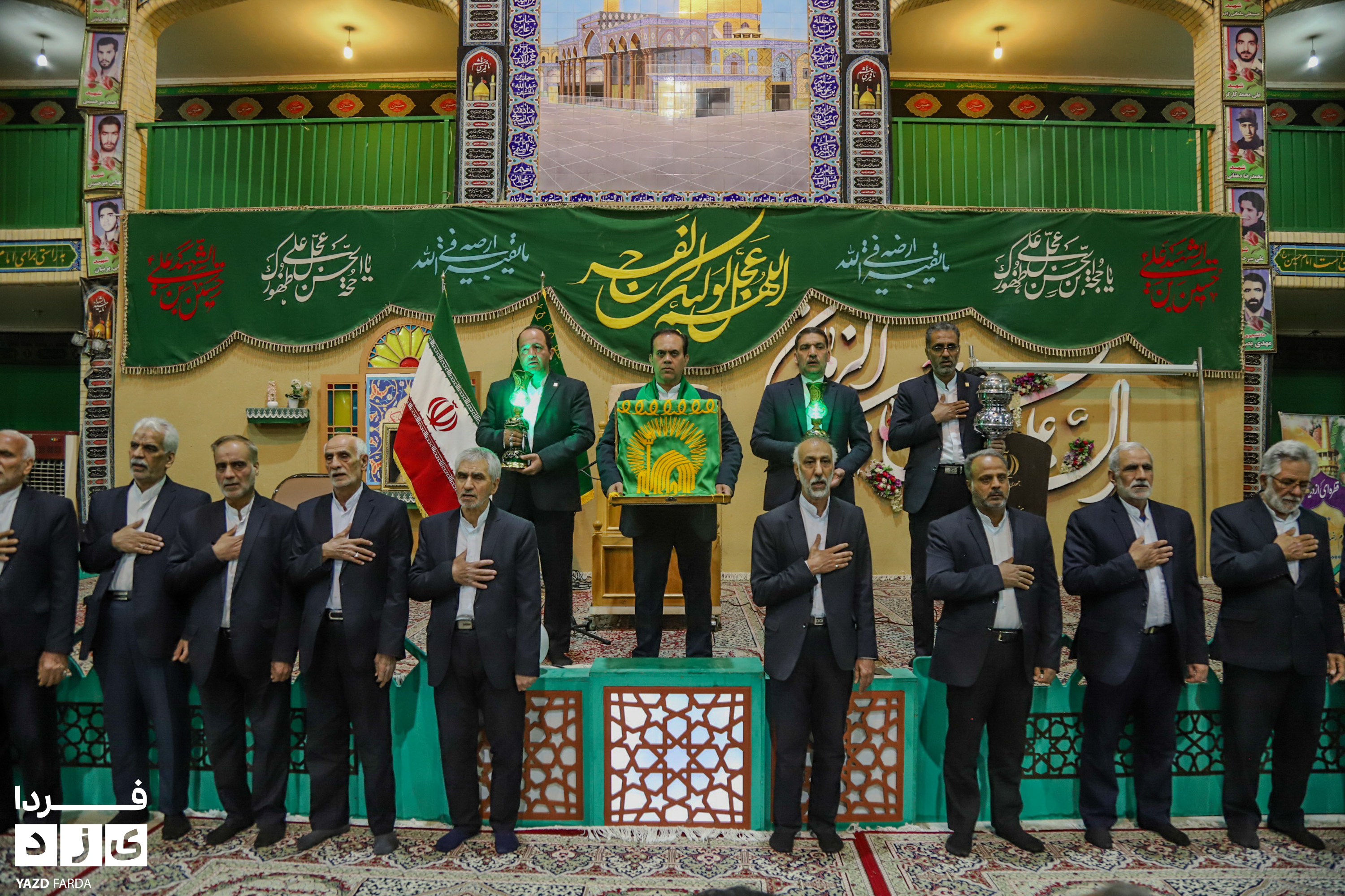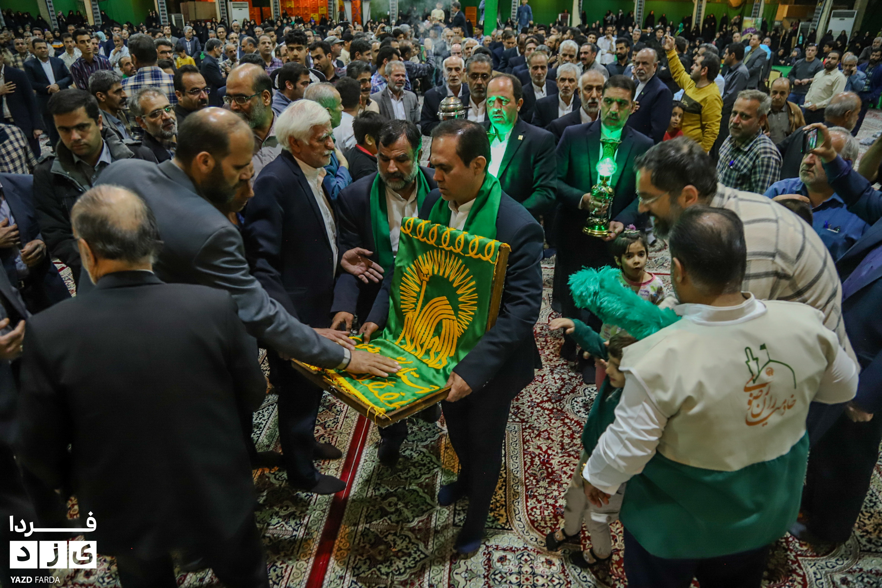 مراسم معنوی خادمیاران رضوی شهرستان یزد، با حضور آیتالله سیدمحمدکاظم مدرسی و نوای دلنشین مداح برجسته کشوری حاج مهدی منصوری، و همراه با پرچم متبرک حرم مطهر امام رضا (ع)، برگزار شد.